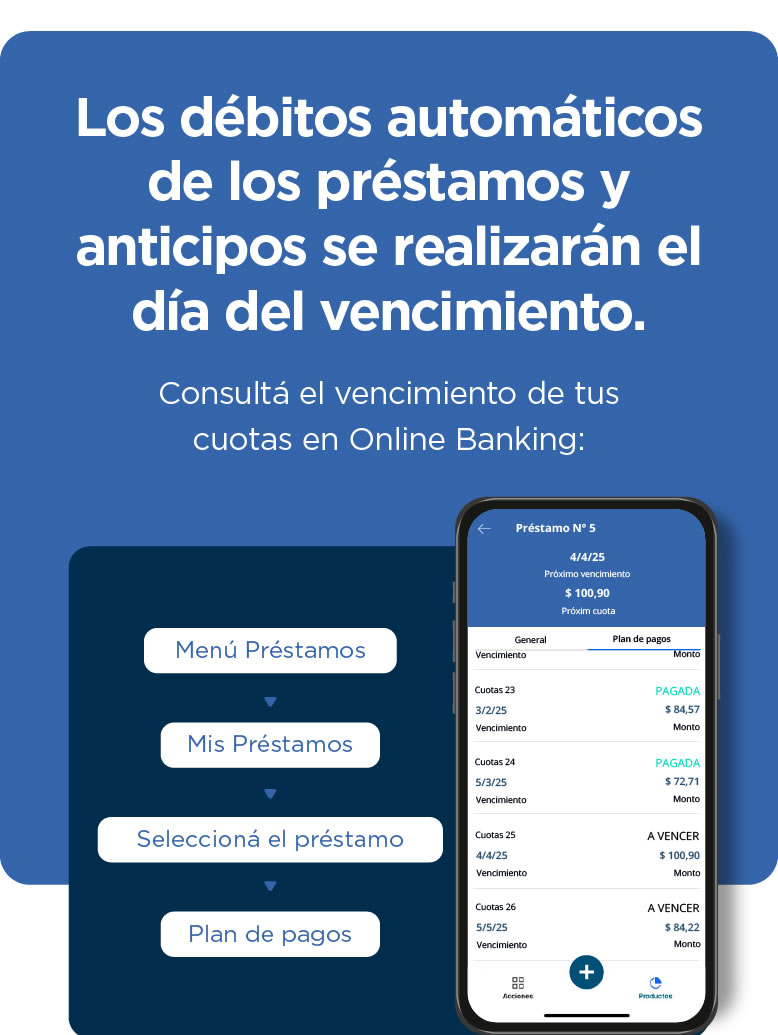 Revisá fechas de vencimiento de préstamos, tarjetas y servicios.