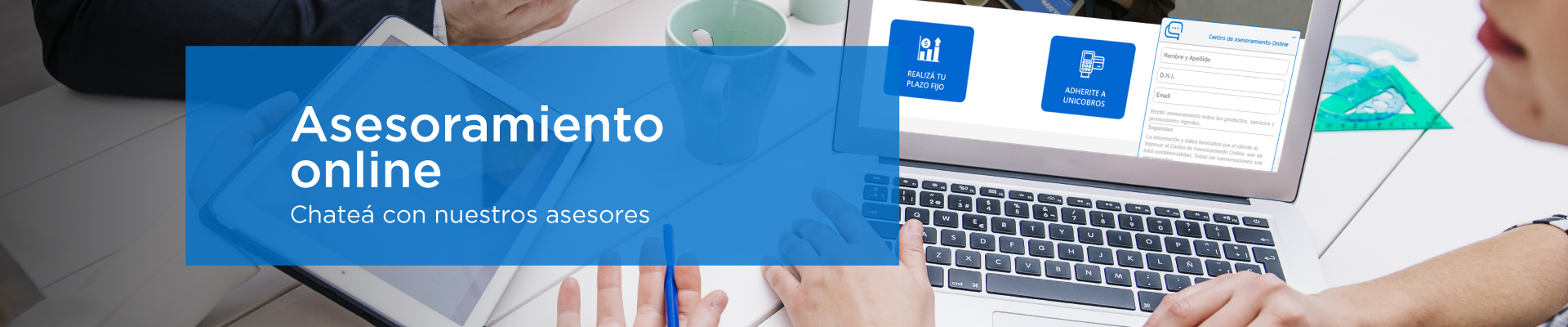 En el Asesoramiento Online se pueden canalizar consultas sobre todos los productos y servicios del Nuevo Banco del Chaco. Está disponible tanto para personas como para empresas.