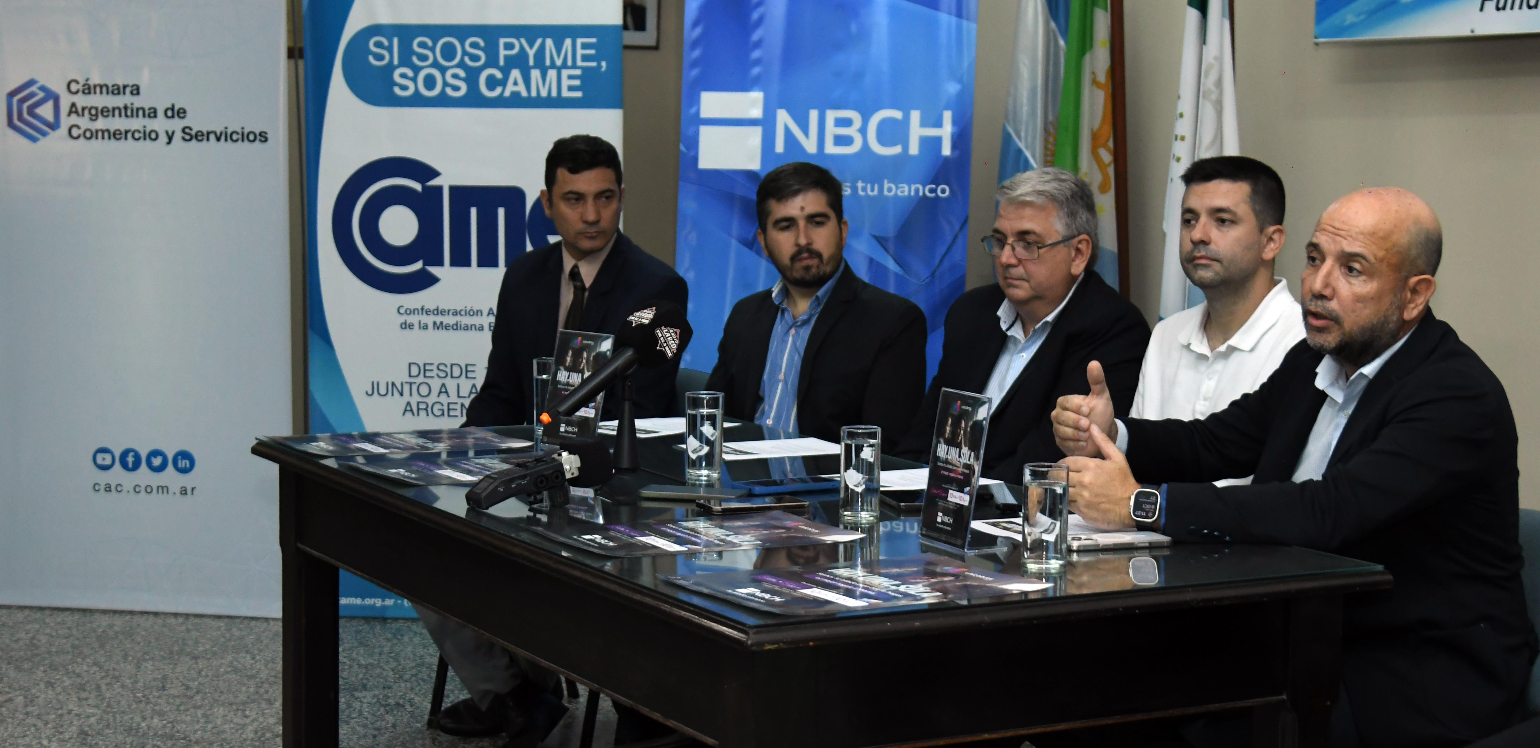 El anuncio, que se realizó este miércoles en la Cámara de Comercio de Sáenz Peña, estuvo encabezado por el intendente Bruno Cipolini; Germán Dahlgren, presidente de NBCH; Gustavo Mourazos, director NBCH; Dante Vallejos, gerente de Banca Individuos; Nelson Lugo, gerente de sucursal Sáenz Peña junto a Fabricio Simoncini, vicepresidente de la Federación Económica del Chaco (Fechaco), y Gregorio Trabalón, presidente de la Cámara de Comercio de Sáenz Peña.