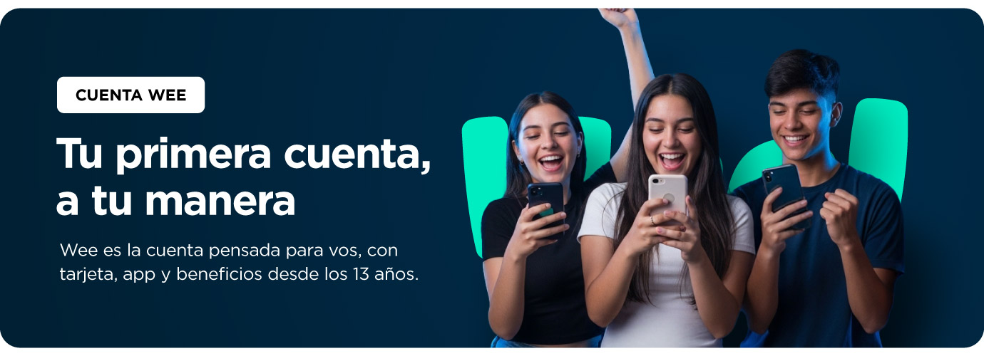Wee es una cuenta gratuita del Nuevo Banco del Chaco para jóvenes de 13 a 17 años, con tarjeta y acceso desde la app.